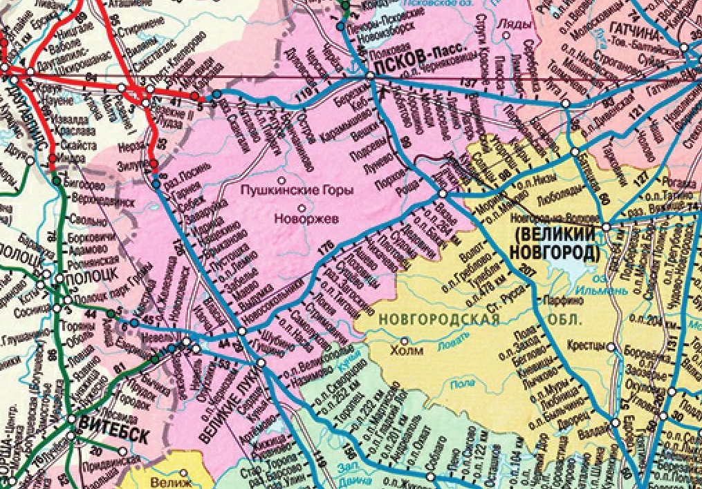 Большая настенная карта Железные дороги России и сопредельных государств (150х240см) 2022г.